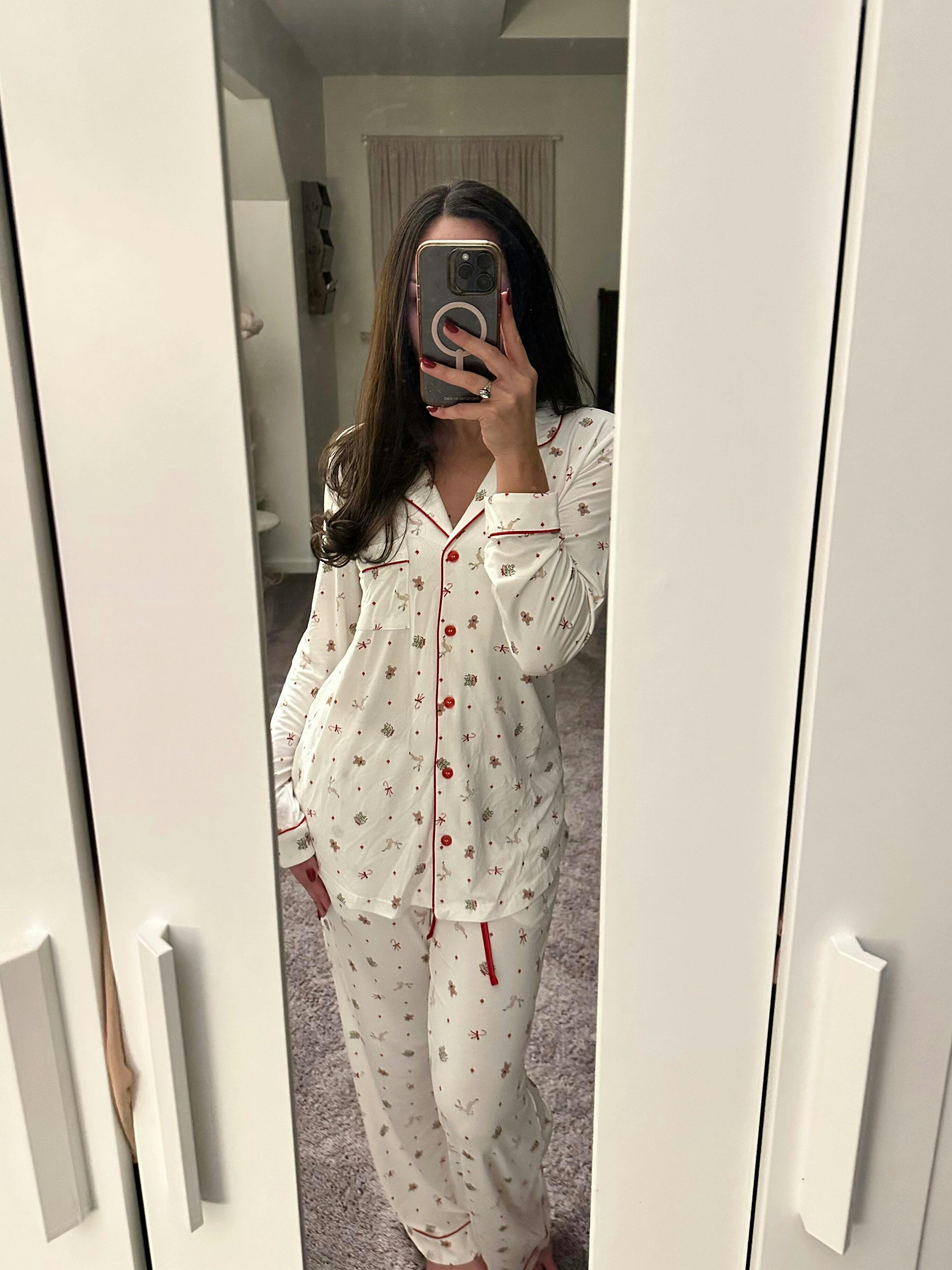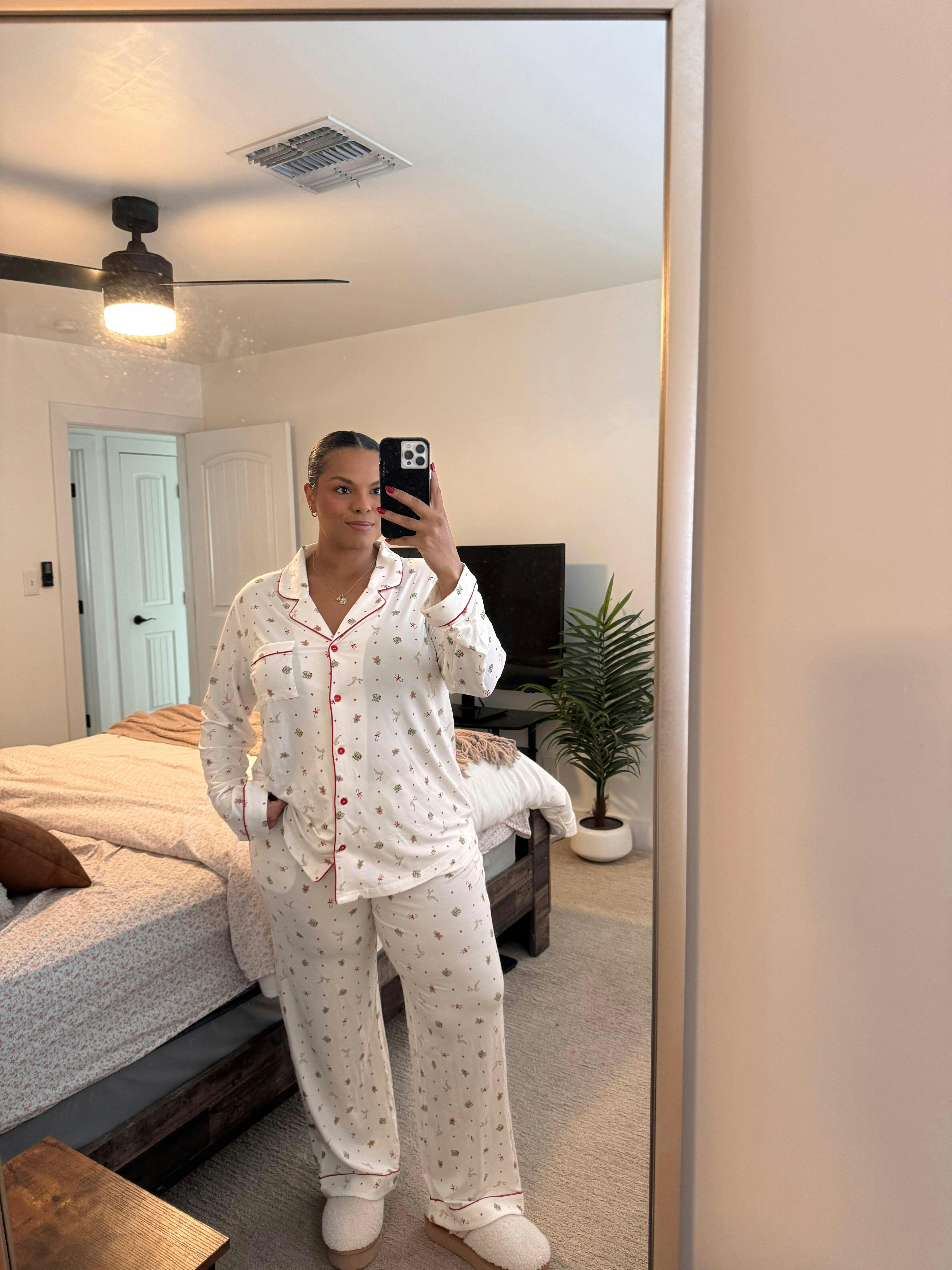 THE holiday pajama set of the season. I cannot recommend these enough! Not only is the design so high end and adorable, the pajamas keep me cool while I’m sleeping and warm while I’m walking around the house in the early morning! I wish I could give 6/5!!